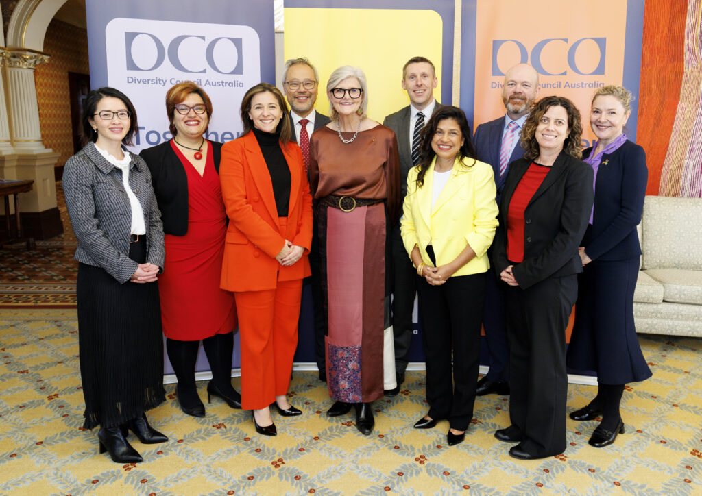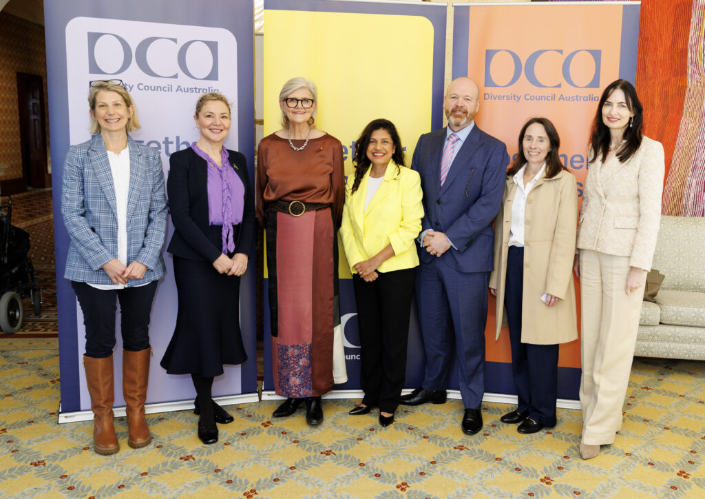 DCA Chair Sunita Gloster AM (she/her), CEO Catherine Hunter GAICD (she/her), and President and Commissioners of the Australian Human Rights Commission were present. DCA founding members and senior leaders joined us, including AMP, AXA XL, BHP, Coles Group, and IBM Australia.